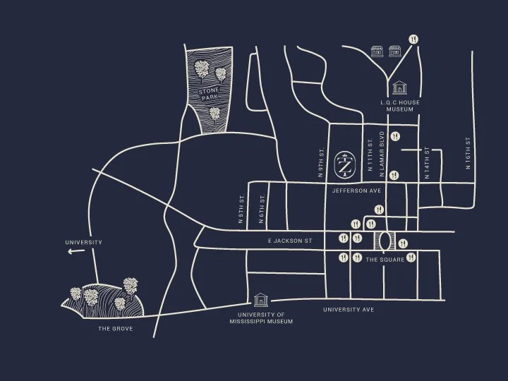 Brand identity for a luxury boutique hotel in the heart of Oxford, Mississippi. The identity blends Southern charm with modern sophistication, creating a visual language that feels warm, refined, and deeply rooted in local character. The system extends across signage, print materials, digital touchpoints, and environmental details — all crafted to evoke a sense of place, hospitality, and understated elegance.